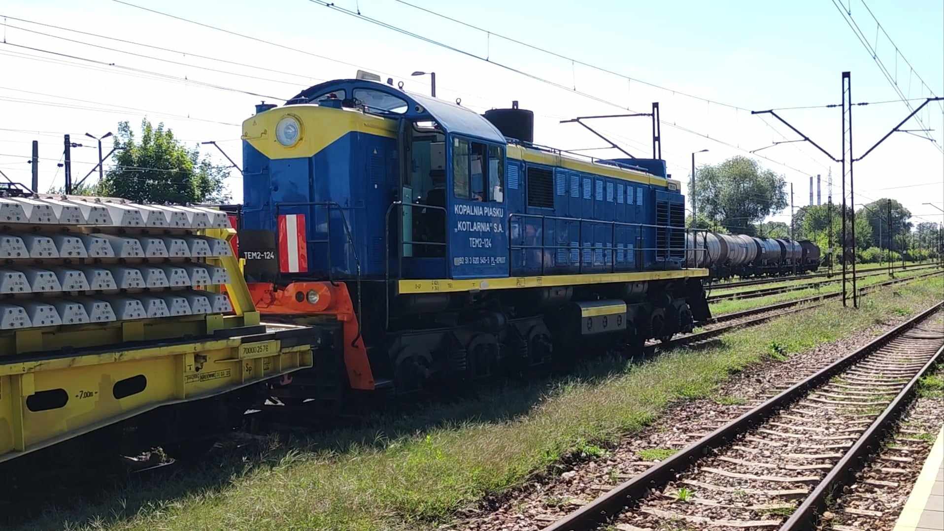 ТЗМ2ЗЛ №124 | TEM2-124 | 24.08.13 14:28 | Kraków NHA | Kraków Batowice | ? | platformy z podkładami | [📷][📹] | koltarnia; |